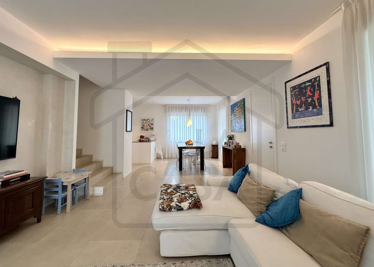 Al primo piano si svela la vera anima della casa: un’ampia e luminosa zona giorno open space, dove ogni dettaglio è stato studiato per accogliere, ispirare e far sentire davvero a casa. Questo ambiente conviviale si apre direttamente su un elegante portico coperto, un vero prolungamento della zona living all’aperto, perfetto per pranzi all’aria aperta, momenti di relax o serate in compagnia, immersi nella quiete e nella luce naturale.
