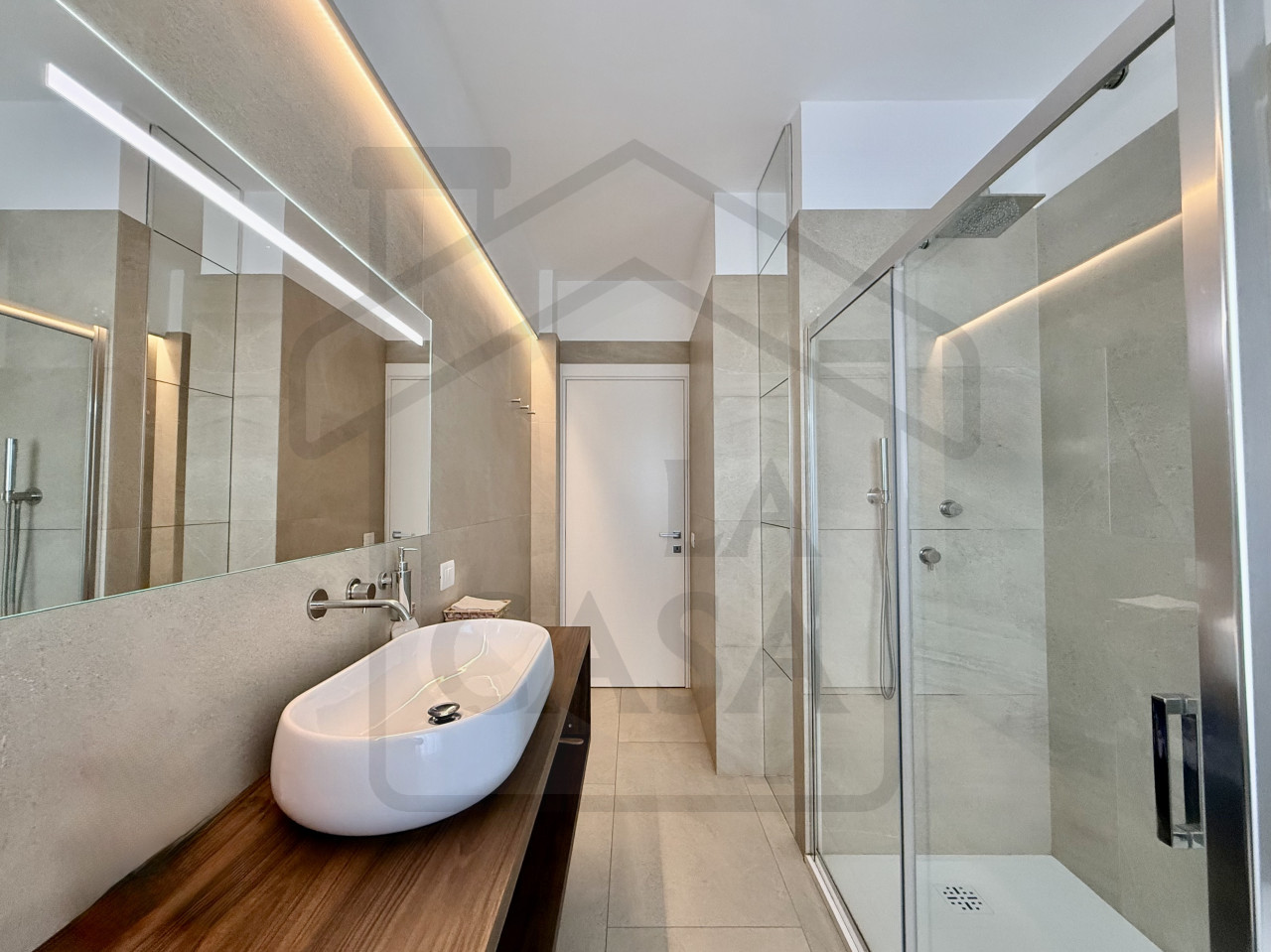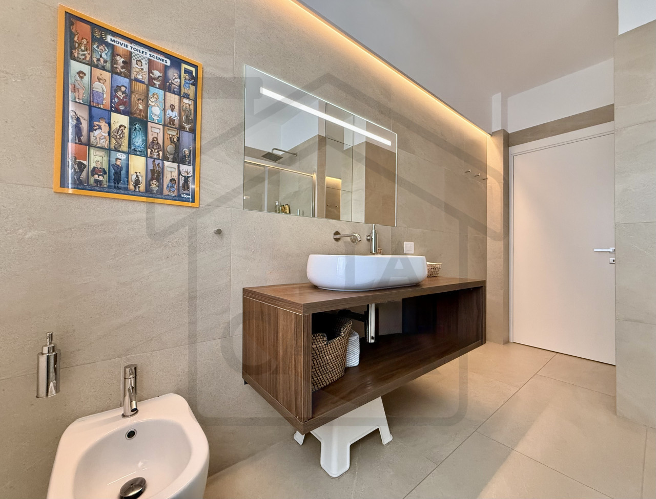 Pochi scalini più in alto, si accede alla zona notte, composta da tre camere da letto, tra cui una spaziosa suite padronale con bagno privato. Un secondo bagno, anch’esso finestrato e dotato di comodo box doccia, completa questo livello, pensato per offrire comfort, privacy e funzionalità a tutta la famiglia.