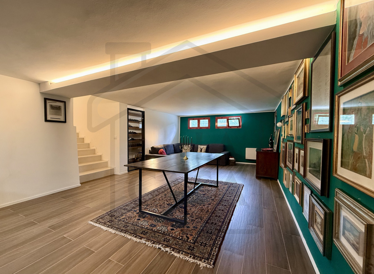 La casa si sviluppa su tre livelli e regala spazi generosi, accoglienti e funzionali. Scendendo al piano interrato, si viene accolti da una calda e intima taverna con cucina e caminetto, ideale per cene in famiglia o serate tra amici. Qui, una raffinata cantinetta a vetro custodisce con eleganza le migliori bottiglie. Salendo qualche gradino, un ampio salone offre uno spazio versatile, affiancato da un bagno e una comoda lavanderia.